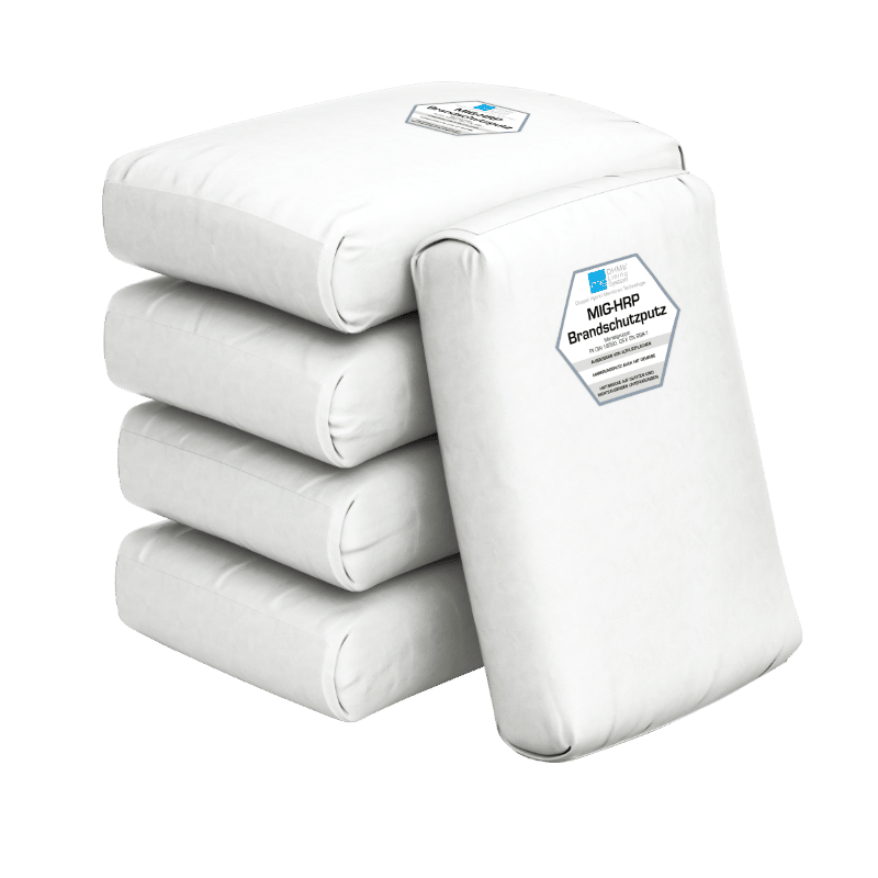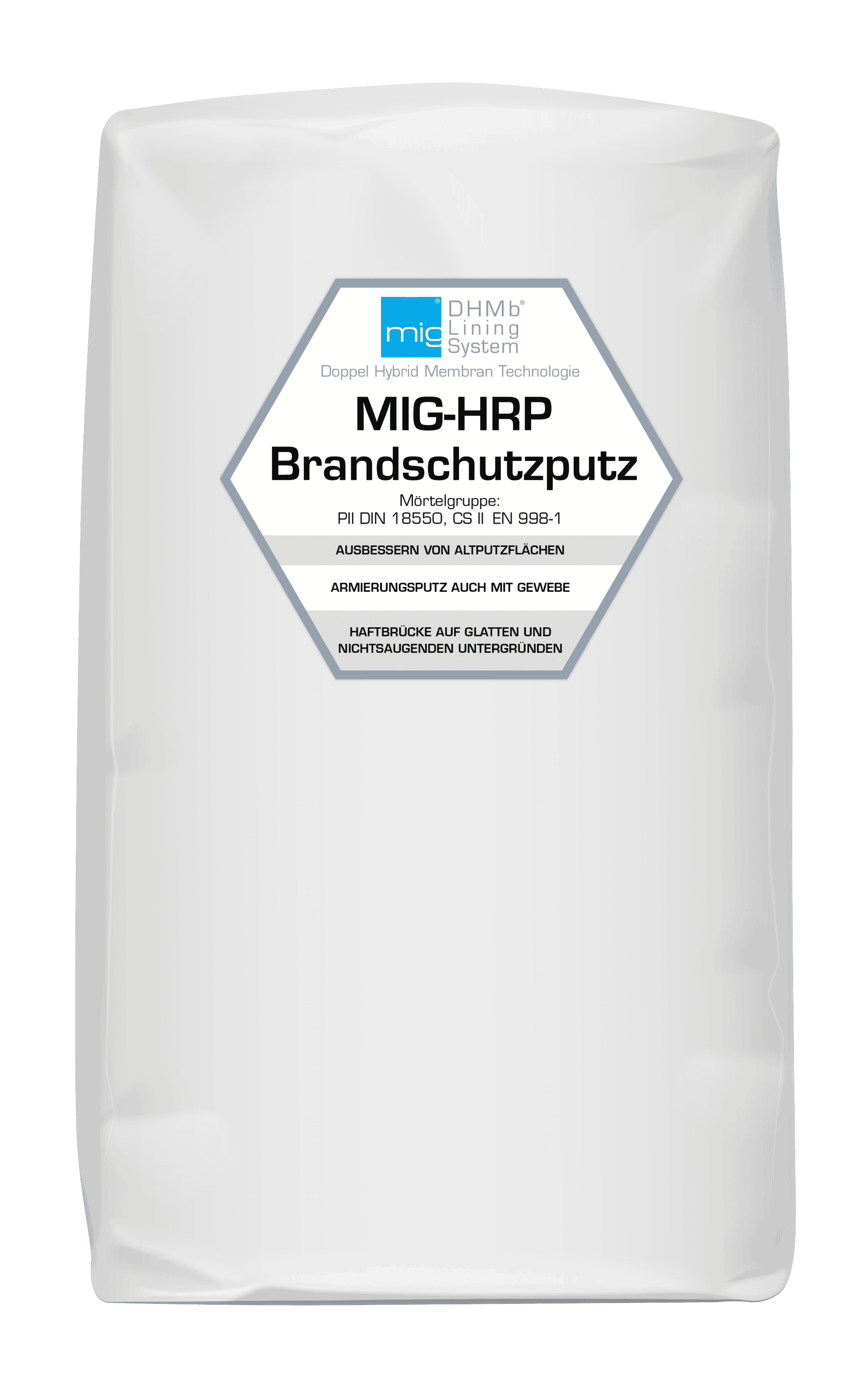 A MIG -HRP tűzvédelmi vakolat ásványi és hőszigetelő tűzvédelmi vakolat, valamint nem éghető szárazhabarcs, amelyet receptvakolatként gyártanak a DIN 4102 4. rész 5.1.4.(5) pontja szerint (építőanyagok tűzviselkedése). és alkatrészek), cementből és mészhidrátból, perlitből 0 – 3mm.